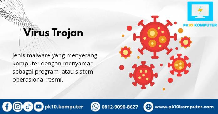 Trojan adalah malware yang menipu pengguna agar menginstalnya, dan setelah itu memberi akses kepada penyerang untuk mencuri data, merusak sistem, atau mengontrol komputer dari jarak jauh.